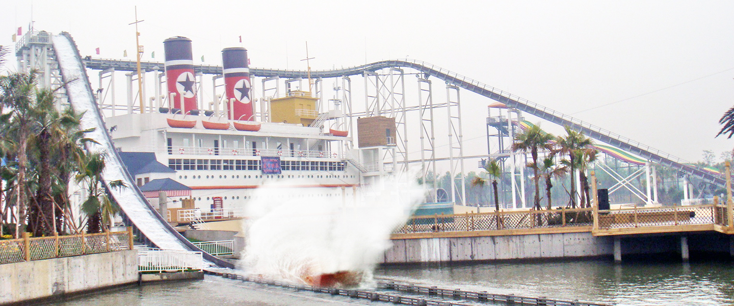 激流勇進(jìn)設(shè)備提升高度28米,軌道蜿蜒而行到達(dá)高點(diǎn)俯沖。游玩過(guò)程中乘客體會(huì)高速?zèng)_浪、失重、離心的各種刺激感受,同時(shí)可欣賞浪花水簾的奇景,其樂(lè)無(wú)窮。