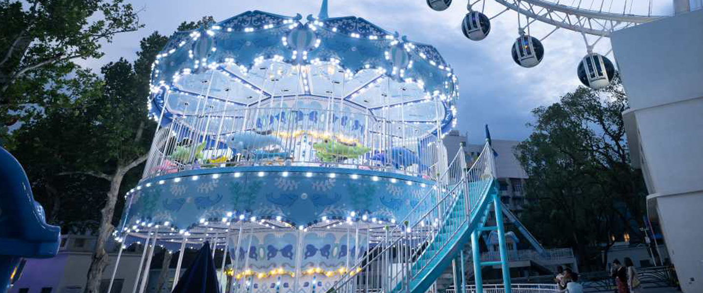 豪華雙層轉?是上、下層可單獨作旋轉運動的裝飾豪華的轉?,采?歐式古典豪華的裝飾?格。蓬頂?shù)幕使诩馑睕_云宵,天花板、內(nèi)圍板鑲嵌著彩?浮雕,并配備彩燈。?匹及宮庭式??結合多彩的花飾,造型夢幻華麗?碧輝煌。
