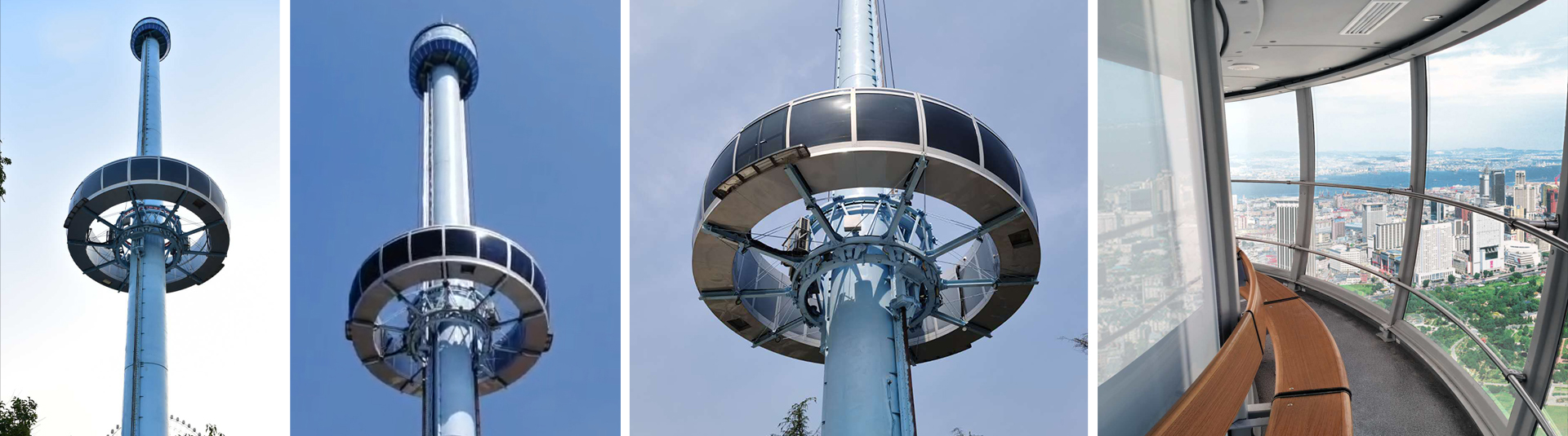 觀景塔可容納60人,運營高效。塔體配備配重裝置,抵消艙體大部分重量,降低提升所需功率,從而達到降低運營成本的效果。塔底配置緩沖裝置,為乘客提供輕緩的乘坐體驗,讓乘客在舒適的環(huán)境中飽覽周邊美景