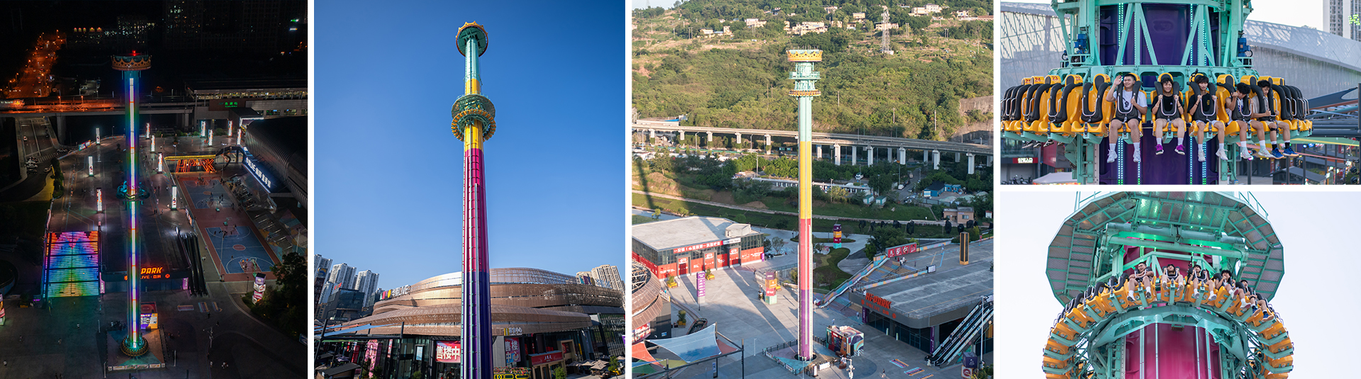 ?由塔集成觀光與失重雙重體驗(yàn)于?體。在?由塔上升過程中,游客可盡情觀賞周邊景?;在?由塔下降時(shí),通過設(shè)備的加速與減速,給予游客異于尋常的加速度升降驚險(xiǎn)感受。